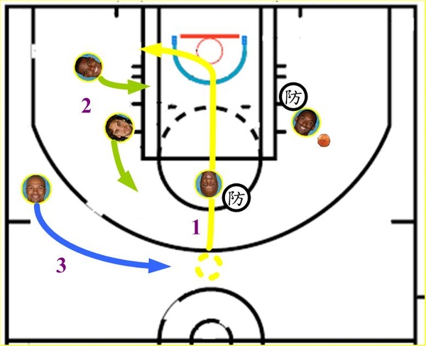 。(如圖示一)最主要的分數來源,來自於快速攻守轉換的早攻,跑位後接球進